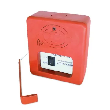 Possui um martelinho para quebrar o vidro e permitir que o usuário aperte o botão de acionamento da moto bomba. Para auxiliar o acionamento, é sempre bom utilizar uma contactora.