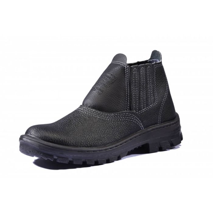 Calçado ocupacional modelo botina, tem fechamento em elástico confeccionado em couro curtido ao cromo.
