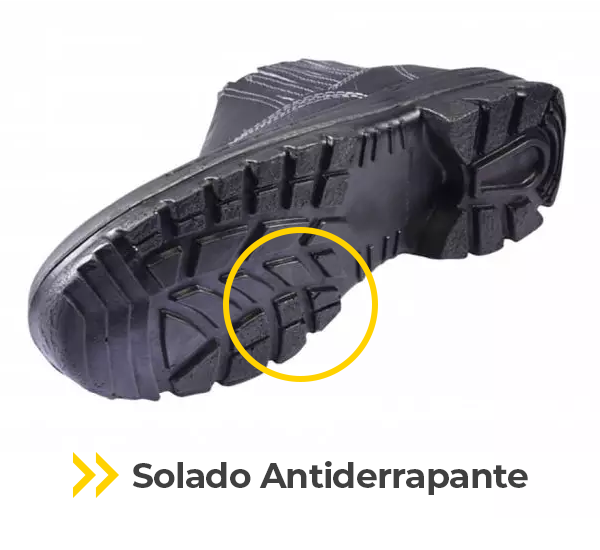 - Solado Antiderrapante: Proporciona segurança em diferentes superfícies, reduzindo o risco de escorregões.