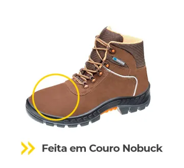 A botina Premier Nobuck combina conforto, leveza e estilo para o trabalho e lazer. Confeccionada em couro nobuck resistente, possui biqueira de plástico, solado em PU bidensidade e sistema TPU Anti-Torsion, que garante estabilidade e reduz a fadiga em terrenos irregulares.