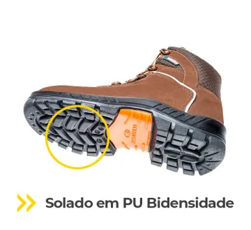 - Solado em PU bidensidade: leve, resistente e aderente