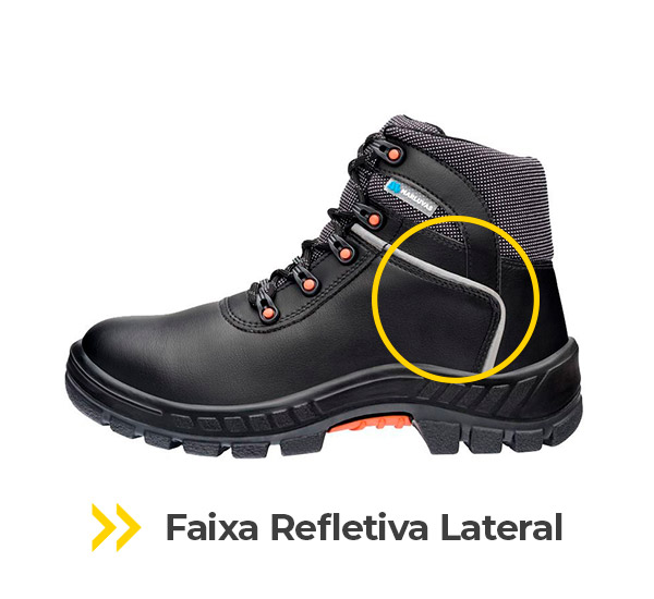 A Botina de Segurança Premier Microfibra, material sintético, super resistente e de fácil higienização. Nas laterais, tem faixa refletiva. A forração é de tecido Climatech, tecnologia utilizada nos uniformes dos astronautas da NASA, que permite o controle de temperatura dos pés. A biqueira é de plástico para conformação. A plamilha de montagem é fixa e resinada. A palmilha removível é a Softbed PU, que proporciona muito conforto e evita a fadiga muscular. O solado é em PU bidensidadede, a tecnologia TPU Plate, que protege os pés em ambientes irregulares ou ao subir escadas. Botina é aprovada na norma 16.603/2017, que garante proteção contra riscos elétricos.