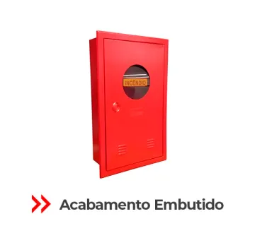 Abrigo metálico para mangueira de incêndio no modelo embutido, projetado para instalação direta em paredes, proporcionando um acabamento discreto e seguro. Fabricado em chapa metálica com visor acrílico, permite a visualização rápida dos equipamentos internos.