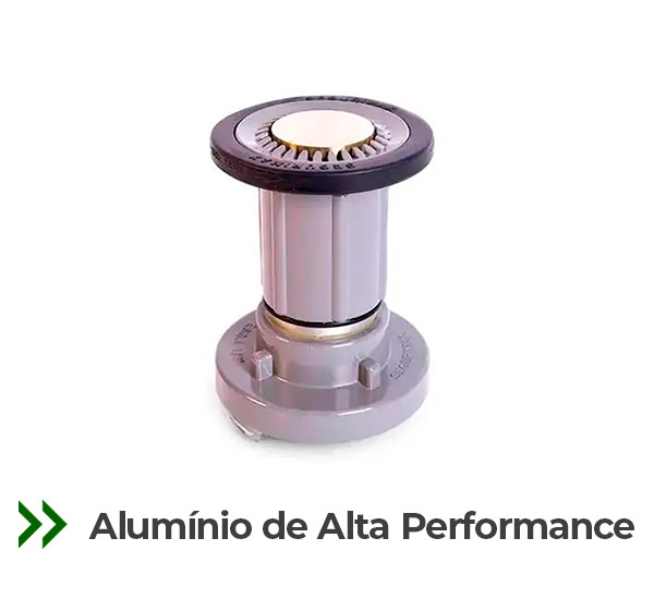 Corpo em alumínio com alta durabilidade e resistência à corrosão.