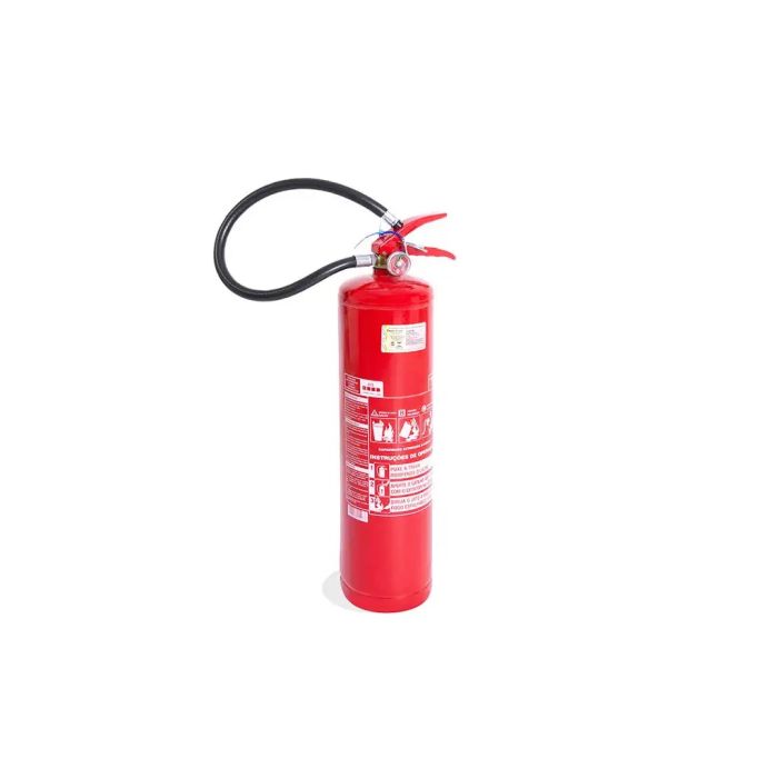 O extintor portátil possui carga de 12 kg de pó químico seco (ABC), sendo altamente eficaz no combate de incêndios das classes A, B e C.