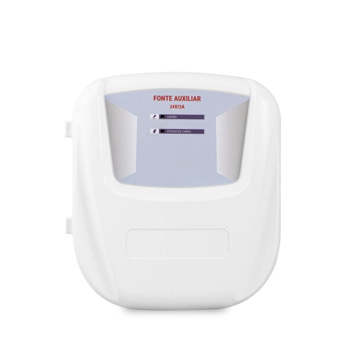 A fonte auxiliar 24V 2A é um equipamento para auxiliar no sistema de detecção e alarme de incêndio.