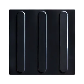 Piso tátil direcional produzido em PVC de alta resistência. Composto por um conjunto de relevos lineares agrupados, com 232,7 mm de comprimento e 30mm de largura na sua base com raio de 15 mm e altura de 3 mm, com ângulo de 45º. São dispostos em placas de 250 mm x 250 mm, 1,7 mm de espessura e atendendo ao especificado pela NBR 9050/2015.