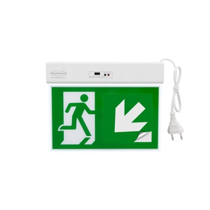 Utilizada para indicação de rotas de fuga e saída do local, com seletor de função sempre acesa ou apenas durante queda de energia. Indicada para estacionamentos, lojas, casas noturnas e cinemas.