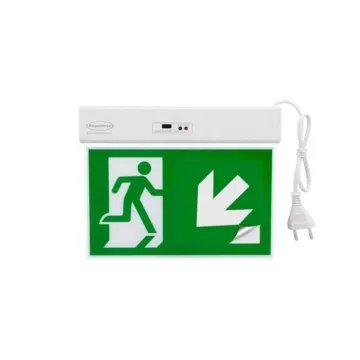 Placa de sinalização saída de emergência LED autônoma 240 x 183 x 21mm de duas face na cor verde, utilizada para indicação de rotas de fugas, na falta de energia ela funcionará, facilitando o abandono do ambiente em uma emergência. Possui adesivo que permite a modificação e personalização da imagem.