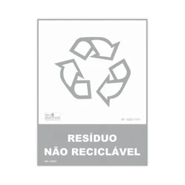 Placa em PVC com fundo branco para lixeiras com identificação "Resíduo não Reciclável".