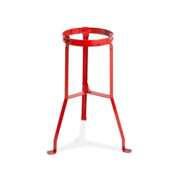 Suporte de Extintor de base tripé para extintores de peso 8/12 KG nos modelos AP, CO2 e PQS. Fabricado em chapa de aço, com acabamento de pintura em vermelho e tratamento anti-corrosivo.